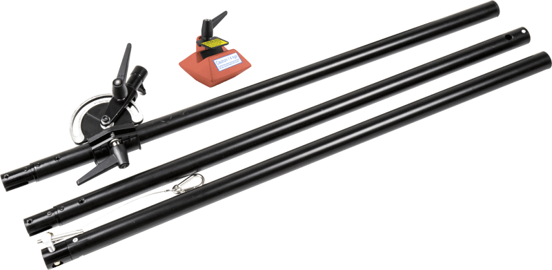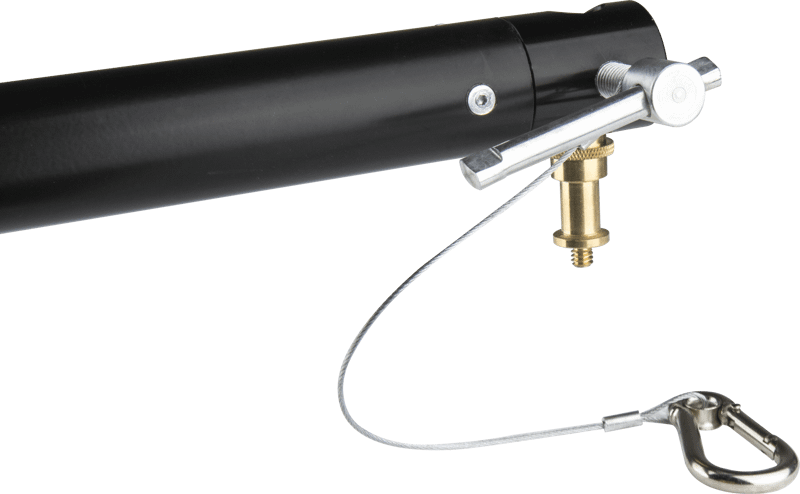 Mukana toimitetaan 4,5 kg:n Wrap & Go Shot Bag, jonka avulla voit lisätä puomin vakautta yksinkertaisesti kietomalla sen puomin ympärille. Teräksinen turvavaijeri on kiinnitetty jalustaan lisäturvallisuuden lisäämiseksi. Voidaan helposti purkaa 93 cm:n pituiseksi varastointia tai kuljetusta varten.
