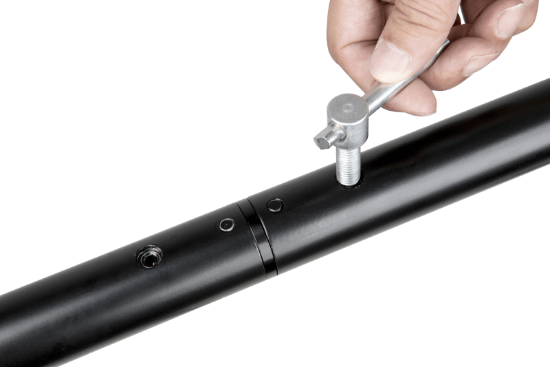 • Raskas varsi voidaan ulottaa täysin 2,8 metriin ja kuormittaa jopa 6,8 kg:n kuormilla