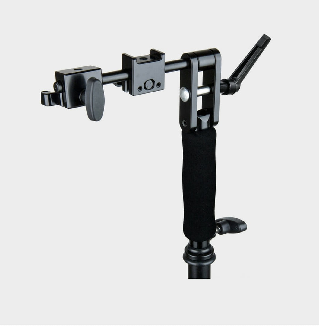 Kupo ARRI WCU-4 Monitor-Bracket -teline, jossa on käsikahva, mahdollistaa monitorin sijoittamisen mahdollisimman lähelle tarkennussäätimen indeksimerkkiä. Ominaisuuksiin kuuluu ergonomisesti suunniteltu kahva, joka siirtää painon tehokkaasti ranteesta hauikseen.