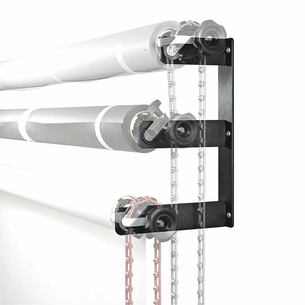 Seinään kiinnitettävät taustakoukut rullapäillä varustettujen taustakartonkien ripustamiseen.