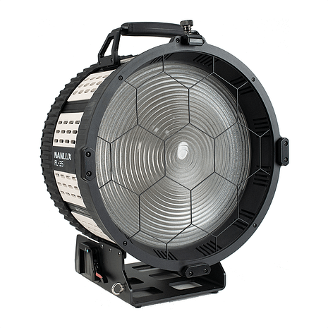 F-35 Fresnel -kiinnitys Nanluxin Evoke LED-valolle. Kiinnittyy valon NLM200-varustekiinnikkeeseen, jolloin säteen leviämistä pystyy säätämään välillä 10-45 astetta.