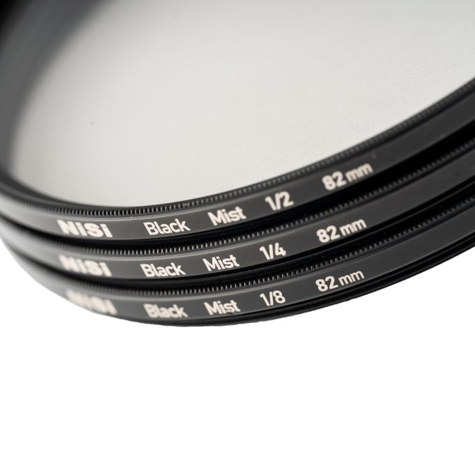The NiSi Black Mist Filters are available in 3 different strengths: 1/2, 1/4, and 1/8 (1/2 is most effect and 1/8 is just a small effect)Many strategies have been developed for softening or diffusing images to create that special “atmosphere” by softening excess sharpness and contrast. Key specifications •Creates a soft, pastel-like quality of light •Has an extra layer of black specks •Provides little loss of details across the image compared to traditional diffusion filters •The frame is made of brass which makes it easy to screw on an off your lens. • Available sizes: 49, 67, 72, 77 and 82mm in 3 different strengths: 1/2, 1/4, and 1/8