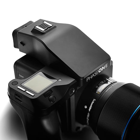 Phase One XF-kameran kirkas prismaetsin joka näyttää kuva-alan miltei kokonaan ja ilman objektiivin lävitse heijastuvan valon heikentymistä. Etsimen päällä myös liitäntä salamalaitteelle tai radiolaukaisimelle. Dioptrian säätö.