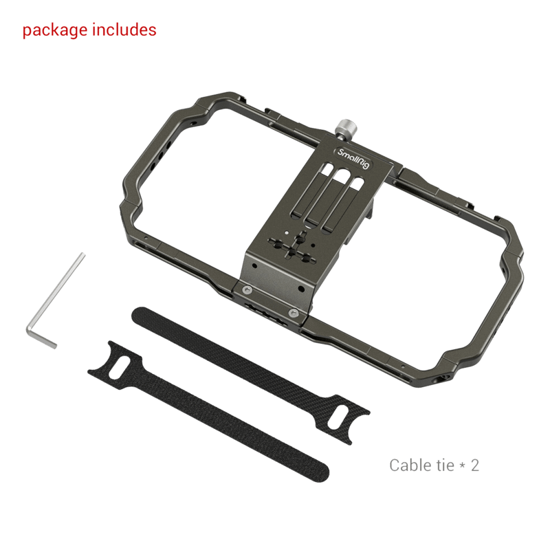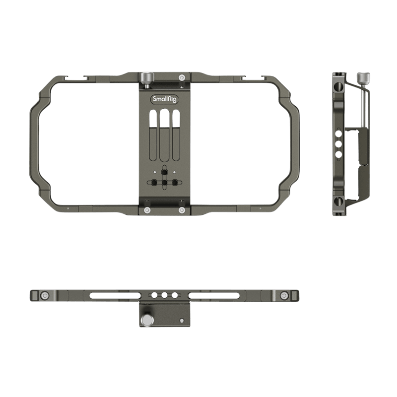 Monta 1/4-kierteistä reikää, joita voidaan käyttää jalustan kiinnittämiseen, kuten SmallRig Aluminum Mini Tripod 2429, yläkahvan kiinnittämiseen, kuten SmallRig Mini Top Handle for Lightweight Cameras (1/4″-20 Screws) 2821, sivukahvan kiinnittämiseen, kuten SmallRig Aluminum Side Handle for Smartphone Cage 2424.