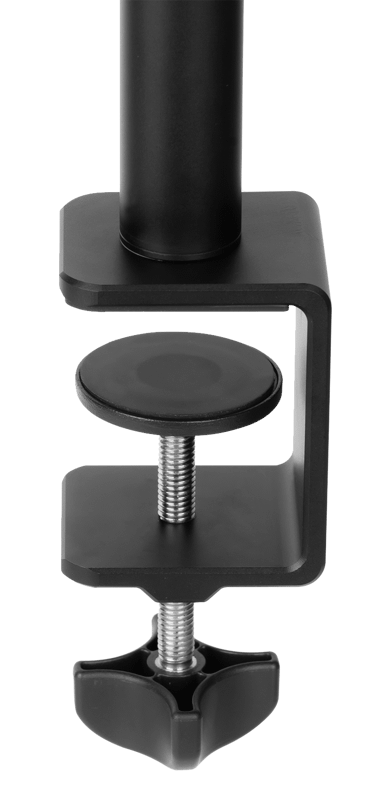 Mukana tulee 360° kääntyvä irrotettava kuulapää (Φ22mm) joka kestää jopa 3-10 kg:n kuorman. Yläosassa oleva 1/4″ ruuvi takaa 360°:n kääntymisen panoraamakuvaukseen ja -90°/+45° kallistuksen monikulmakuvaukseen ilman laitteiden purkamista. Teline voidaan kiinnittää jopa 5 cm:n paksuisille työpöydälle/tasolle.