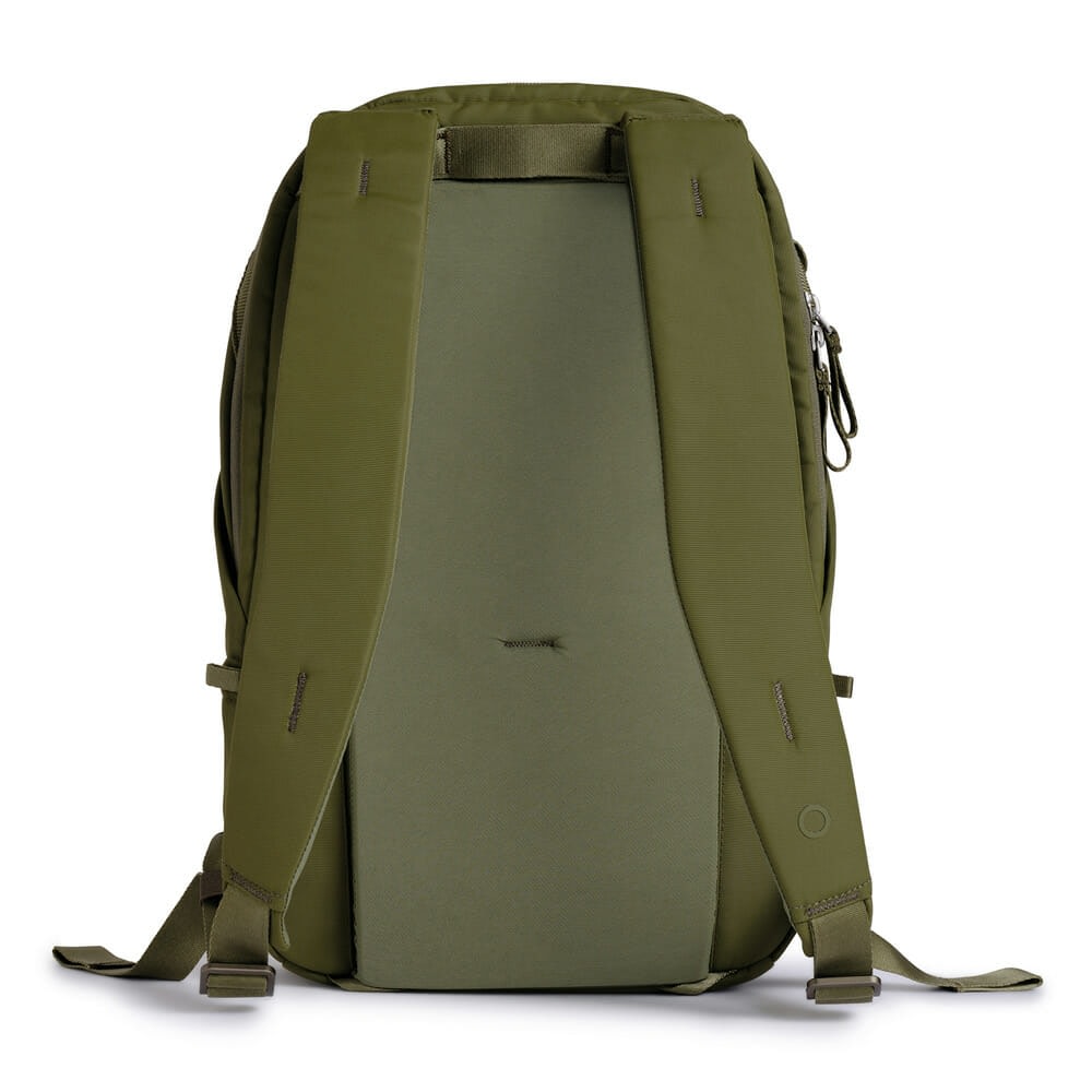 Arkose-repussa on 12 erilaista säilytysosiota, mukaan lukien pehmustetut osiot kannettavalle tietokoneelle ja tabletille, kynäpidike sekä taskut pienille arvoesineille. Ulkopinta on valmistettu säänkestävästä kierrätetystä nailonista.